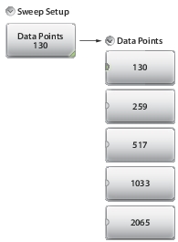 4. Submenu Selection example: Data Points button in the Sweep (3) menu. The current value is displayed below the button name. Pressing the button displays a submenu of the available values. Press one of the buttons to select a new value. Press Esc to cancel. Submenu Selection buttons are indicated by the glowing green triangle in the lower‑right corner of the button. | ![]() |