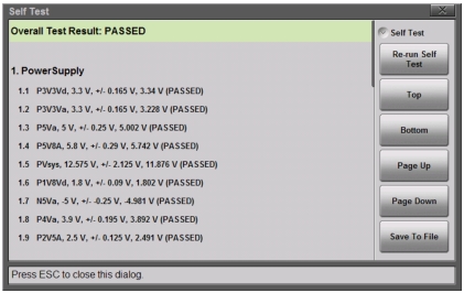 4. Pressing Save to File automatically creates a text file of the test results. The file is saved to internal memory and labeled S820ESelfTest#X.txt. The .txt file can be copied to a USB memory device (using the copy/paste function in File Mgmnt) and viewed on a PC with a text reader or word processor.
