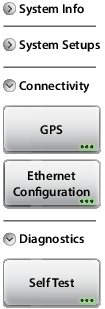 ![]() | Connectivity GPS Press to display the GPS Menu. Ethernet Configuration Press this submenu key to display the Ethernet Configuration Menu, which displays the IP Address and MAC Address of the instrument and allows you to choose the setting for obtaining the IP Address (DHCP or Static). Diagnostics Self Test Press this submenu key to initiate a series of diagnostic tests that check the components of the instrument. A display lists the individual tests with a pass or fail indication (Figure: Site Master Self Test). Press Esc to close the dialog box. Press Save to File to create a text file of the test results. The file is saved to internal memory and labeled S820ESelfTest#X.txt. The .txt file can be copied to a USB memory device and viewed on a PC with a text reader or word processor. |