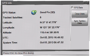 ![]() | GPS Data Clear Data Press this key to clear the Site Master’s current GPS location data or last known GPS location data. If a compatible GPS module is attached, then the instrument will attempt to re‑acquire a GPS fix. Note: The last Good Fix location information will be retained until the instrument is powered off, the Clear Data button is pressed, or a new Good Fix is acquired. The Good Fix or the Last Fix location information is store d in the measurement file and is included in the screen capture header/footer. Sync System Time Press this key to sync the instrument’s time setting with the current GPS information. Sync only works with a good GPS fix. After a valid sync the instrument time is reset based on the UTC time plus/minus the time zone offset. Refer to Time Zone Settings. |