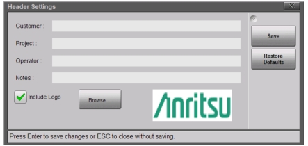 1. Press Header Settings to enter or change the report header data.