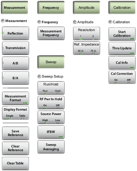 Figure: Main Menu Keys shows a menu map of the VVM menus. Menu maps typically display all possible submenu keys, although some keys may be displayed on the instrument only under special circumstances (refer to menu descriptions on the following pages).