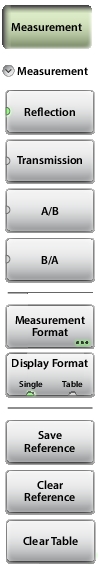 ![]() | Measurement Save Reference Press this submenu key to save the current measurement as a reference. Note that this is equivalent to the Zero function found on some other VVM products. Saving a reference sets the VVM to relative measurement mode. Text and data in the display are changed from black font to green, and “Relative Value” is displayed. The reference values are displayed in black font. Clear Reference Press this submenu key to remove the reference measurement from memory. This resets the VVM to display absolute measurement values. Clear Table Press this submenu key to clear all of the saved measurements in Table display format. The saved reference value remains saved to allow additional relative measurements. This submenu key appears only when Display Format is set to Table. |