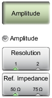 ![]() | Amplitude Resolution 1 2: Press this submenu key to toggle the decimal display to 1 or 2 digits after the decimal point. The default setting is 1. Ref. Impedance 50 Ω 75 Ω: Press this submenu key to toggle the reference impedance setting. The default setting is 50 Ω. |