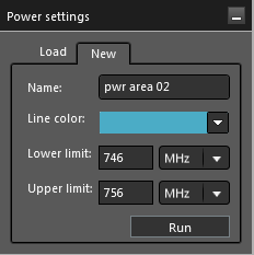 If you click Run, the current defined power display is stored in the database and a new power chart appears in the lower section of the mode.