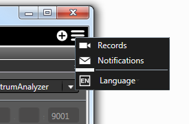 After running a measurement or taking a snapshot, every record can be viewed by clicking on the three pull down list bars in the top right corner of the SpectraVision window and then clicking on Records. The pull down list shown in Figure: View Records in the Record Pane.