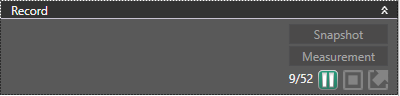 While the recording is running, you cannot use the “Snapshot” and “Measurement” feature. The currently gathered data chunks are shown in white as 9/52 in Figure: Active Record Measurement Panel. In this instance, once the counter reaches 52 the measurement is complete.”Additionally, you can pause and continue the current recording.