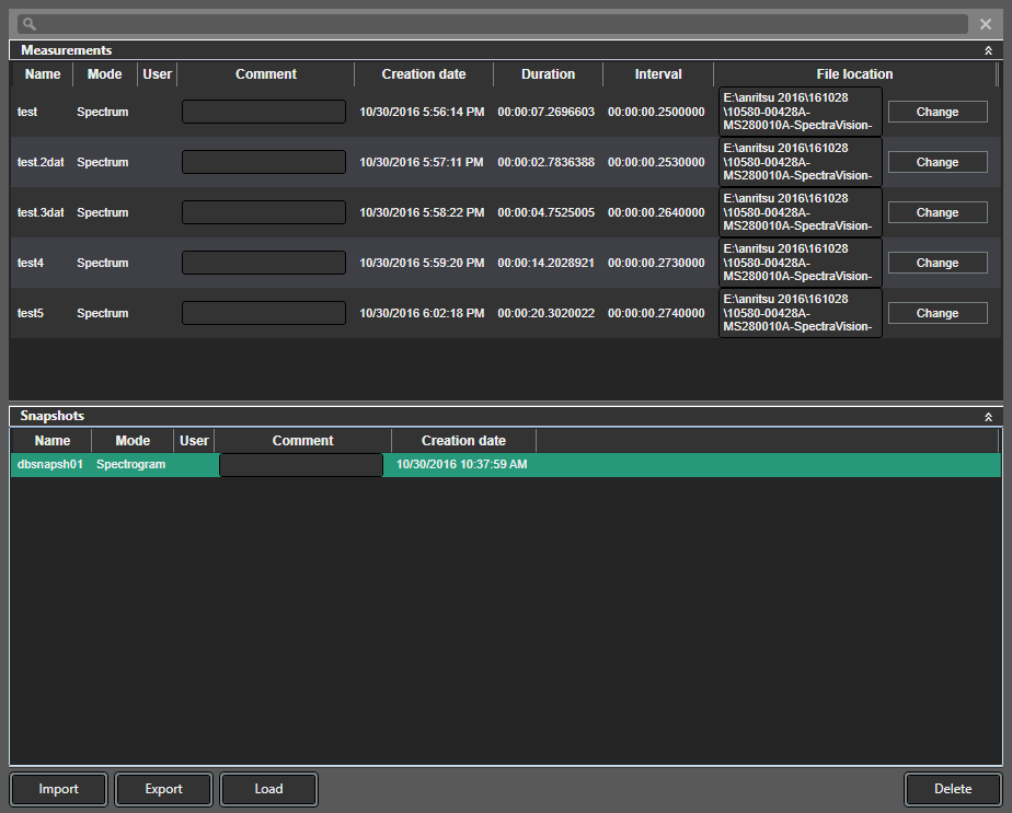 Once Records is selected in the pull-down list. The Records window for Measurements and Snapshots is displayed in Figure: Records Window.