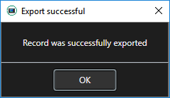 After clicking Export the file will be created and an “Export successful” dialog pops up.