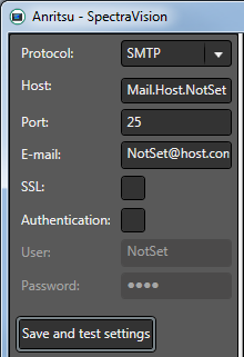 2. Click Notifications. The setup panel for the email server opens on the left or the SpectraVision Window.